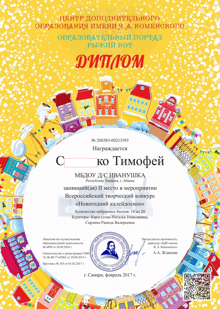 23 ноября 2016 года в МБДОУ д/с "Варенька" г. Абакана состоялся финал Республиканского конкурса "Профессиональный дебют" Из 58 конспектов в финал прошли 6 лучших разработок. по итогам смотра образовательной деятельности я, Карагусова Наталья Николаевна, заняла почетное 3 место.